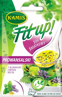 Kamis Fit up! Sos Sałatkowy PROWANSALSKI jest polecany jako najlepszy dodatek do sałatek z wszelkiego rodzaju sałat z dodatkiem surowych warzyw. Jest też doskonały do sałatek owocowych. Stanowi kompozycje płatków nagietka, kwiatów lawendy, melisy, estragonu, natki pietruszki, czosnku, pieprzu czarnego i błonnika.