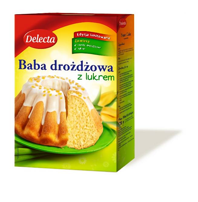 Przygotowanie baby Delecty jest bardzo proste. Wystarczy dodać jaja, mleko, margarynę i wodę. Wyrośnięte ciasto należy przełożyć do blaszki z kominkiem lub klasycznej keksówki. Upieczoną i wystudzoną babę można polukrować i ozdobić według uznania – posypką lub kandyzowaną skórką pomarańczową.